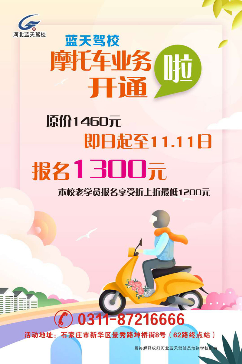 蓝天驾校摩托车业务开通啦